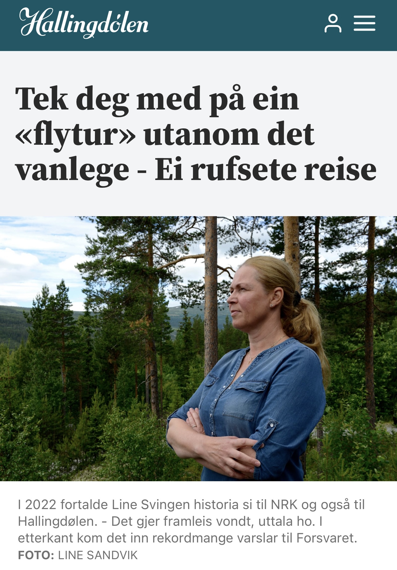 Line Svingen har delt sin historie i både TV, radio og podcaster. Som Norges første kvinnelige militære helikopterflyger og foredragsholder innen ledelse og arbeidsmiljø, blir hennes erfaringer jevnlig brukt i mediene.